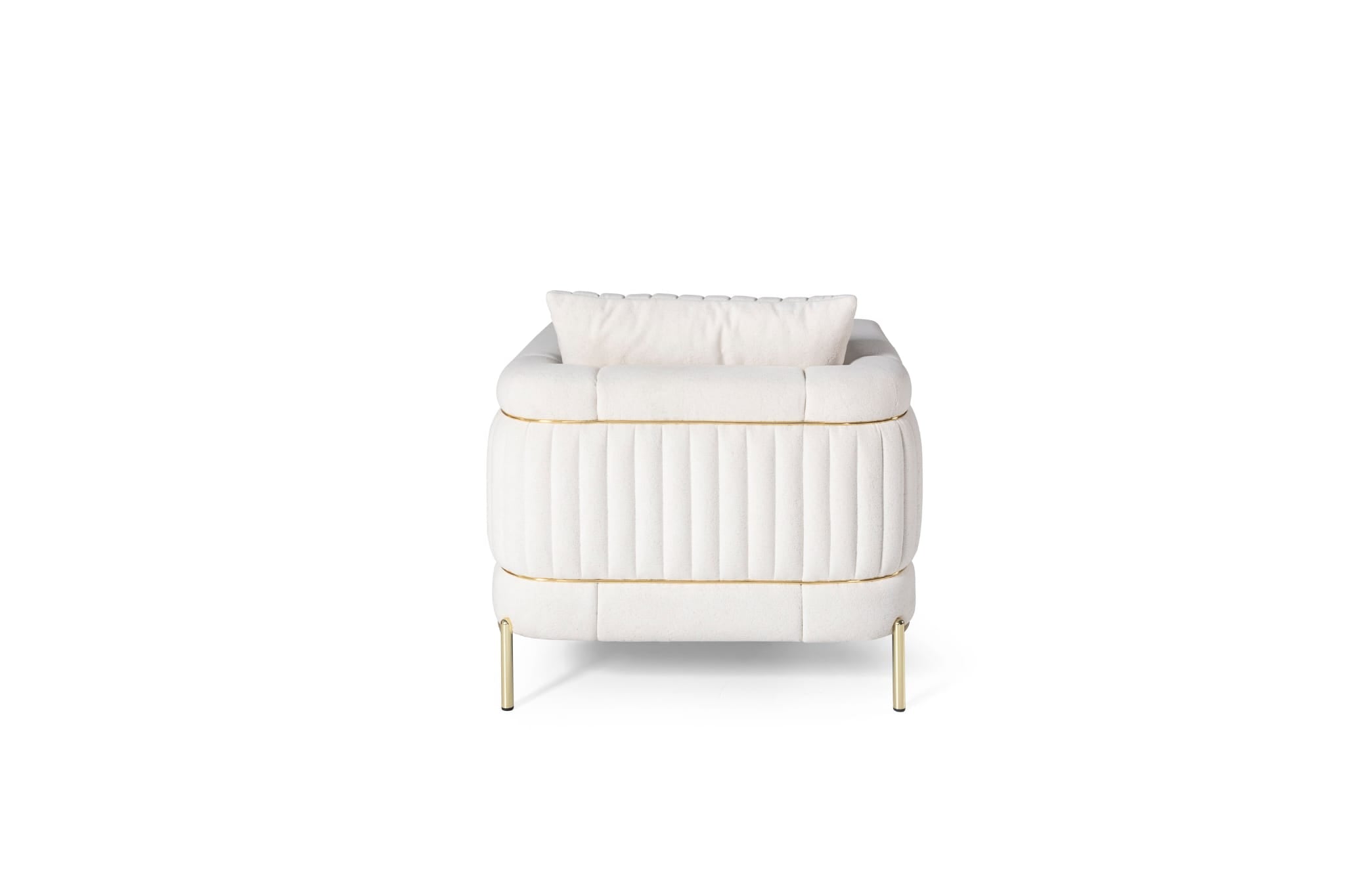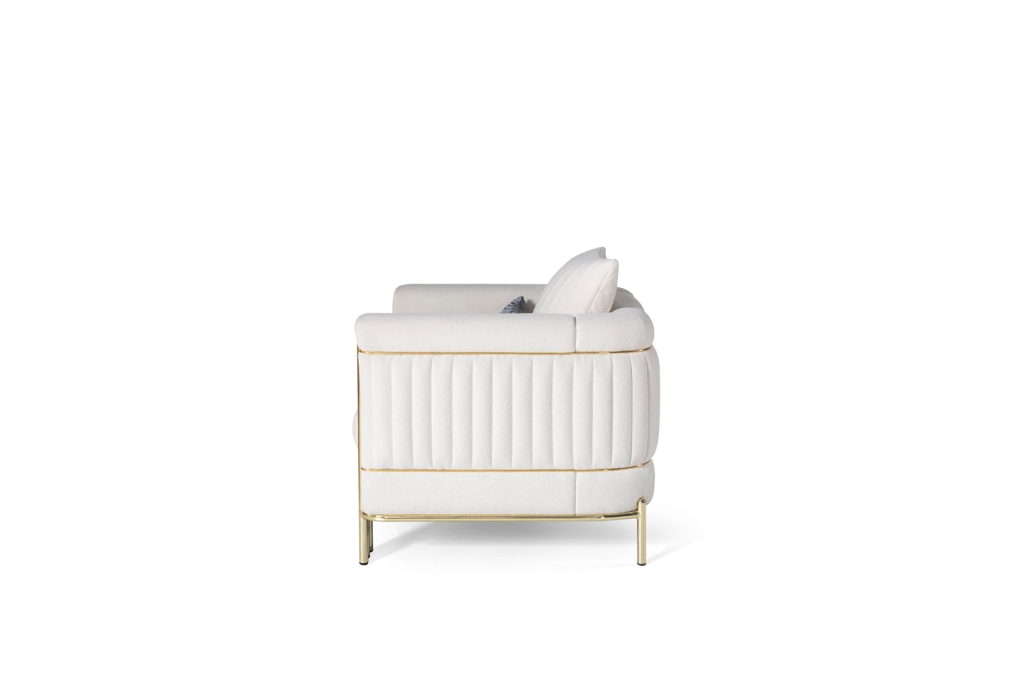 The Arel chair stands out with its beautifully tailored channel design, curved back and elegant gold metal frame. Dressed in an easy-care chenille fabric with luxuriously soft hand, this chair is both elegant and comfortable