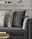- Stocked in Cream, Grey and Black textured fabric, with Gold metal trim