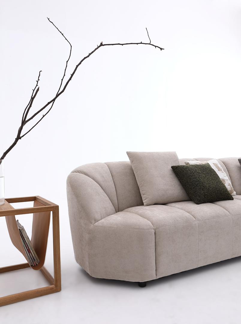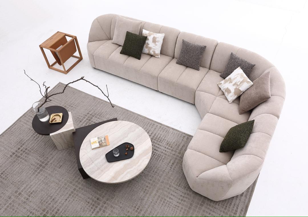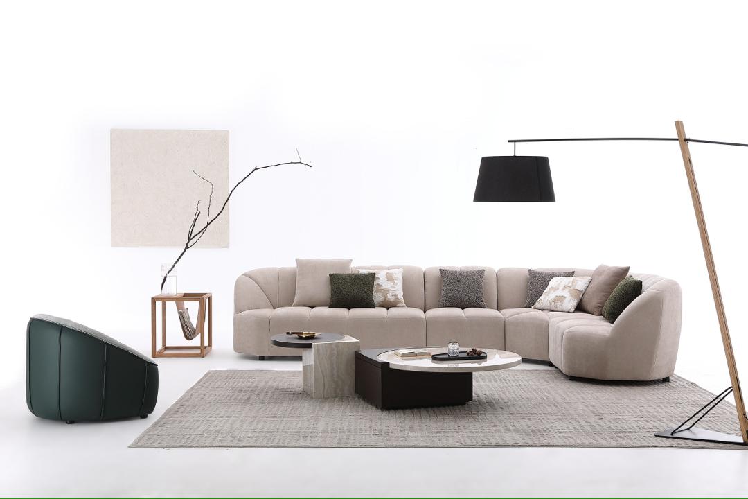 This modern sectional offers relaxed seating with a refined look. The angled sides present a shaped silhouette, and the pulled tufting on the seat adds to the fashionable look. Dressed in a beige twill fabric, the Allegro sectional is a fresh addition to any living room.