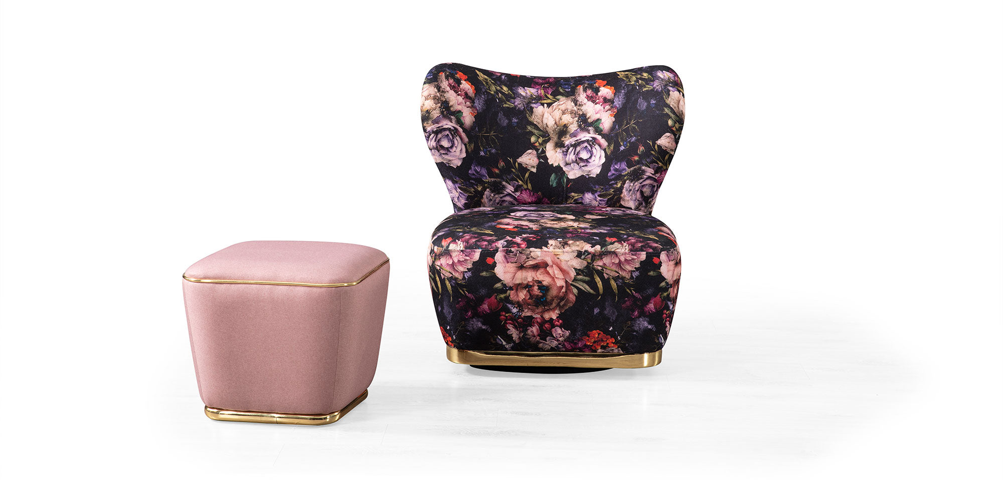 - Stocked in Charcoal Grey as well as Blush Pink chenille fabric with Gold trim